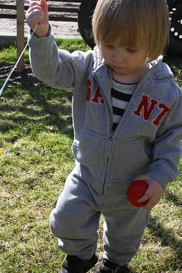 Otin tuosta raidallisesta Bodenin takista koon 1,5-2 -vuotta ja se on (reilu 86cm pitkälle) Epulle nyt juuri sopiva. Mutta mitenköhän käy loppukesästä.. Voisin vannoa, että takki on sitten jo pieni, koska tuntuu, että se alkaa jo nyt käydä naftiksi. Toisaalta, kevääksihän minä tuon takin ostin, niin onneksi olemme nyt ehtineet käyttää sitä.